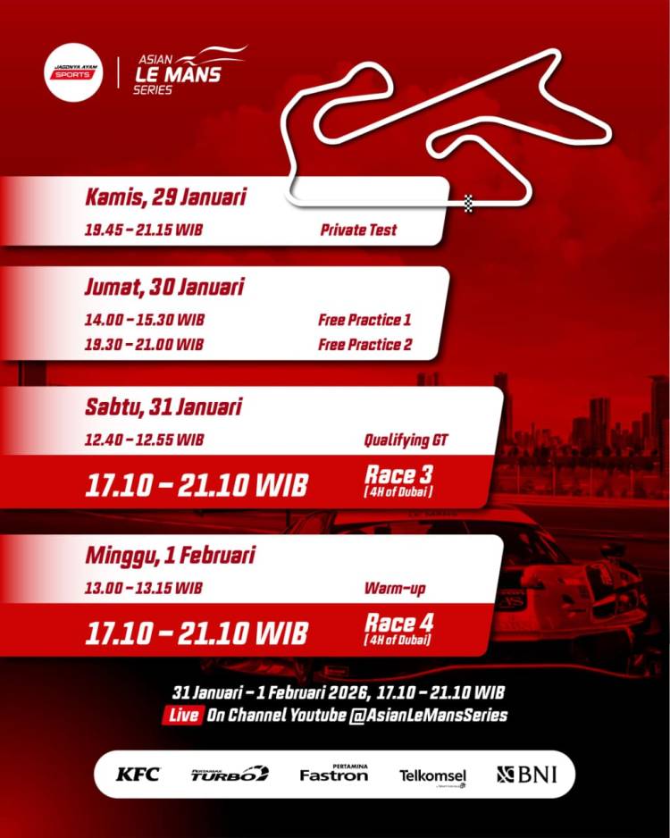 Hasil Private Test Kamis dan dua Free Practice Jumat kian menegaskan peta kekuatan kelas GT Asian Le Mans Series (ALMS) 2025-26. Dubai Autodrome diperkirakan menjadi tempat penuh perjuangan bagi tim AF Corse 51, yang menggeber Ferrari.