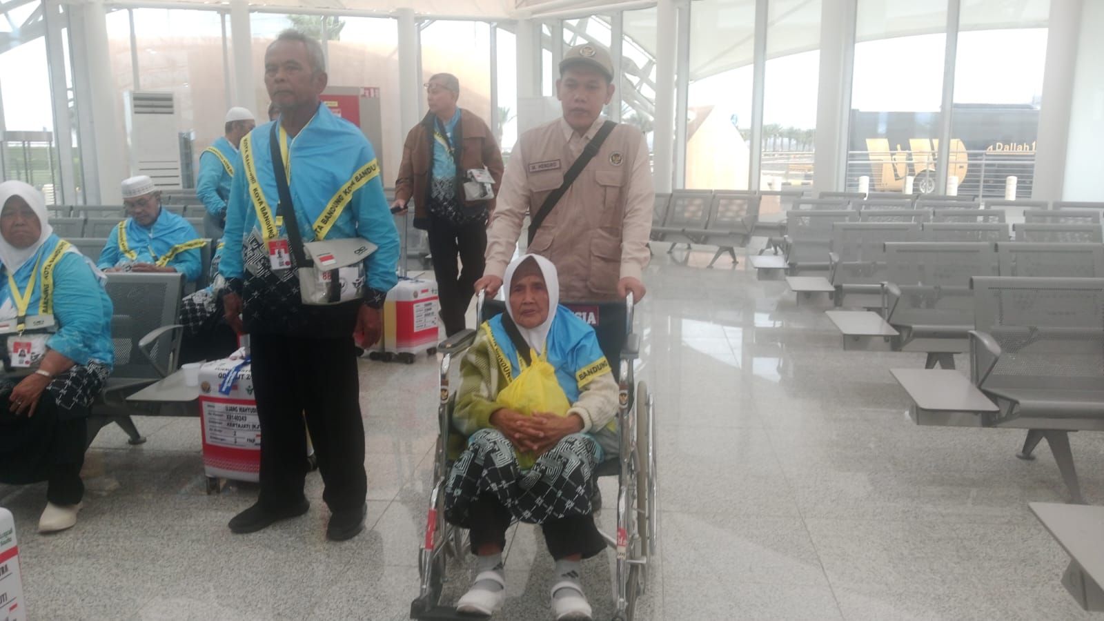 "Saya tahun 2018 umrah sama anak saya, namun anak saya ini sudah meninggal. Habis pulang umrah langsung daftar haji dan alhamdulillah tahun ini bisa berangkat," ujar Mbah Emen dengan wajah ceria duduk di kursi roda.