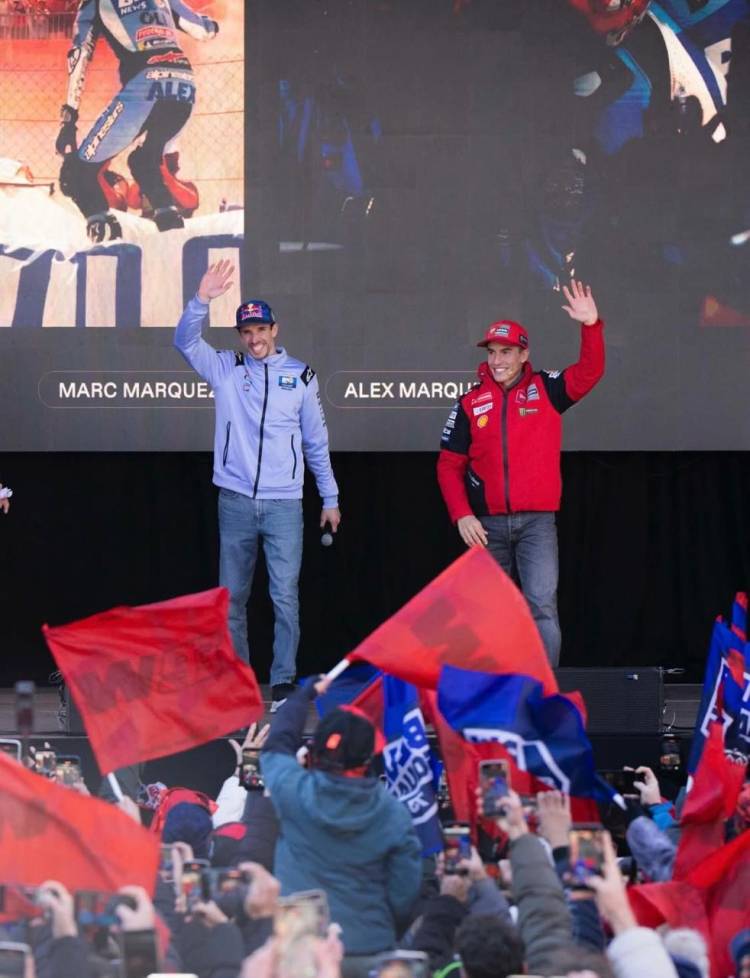 Setelah prosesi sekitar dua ratus sepeda motor, di mana Alex berada di belakang setang Ducati Panigale dengan Marc sebagai pembonceng yang masih dalam masa pemulihan dari cedera bahu kanannya. Arak-arakan tiba di alun-alun dari Magdalena de Montclar, salah satu titik fokus kota keluarga Marquez, di mana sebuah panggung didirikan untuk kakak beradik Marquez, orang tua mereka, Roser Alenta dan Julia Marquez, serta tim masing-masing di Ducati dan Gresini, yang merayakan kemenangan bersejarah tersebut hingga sore hari.